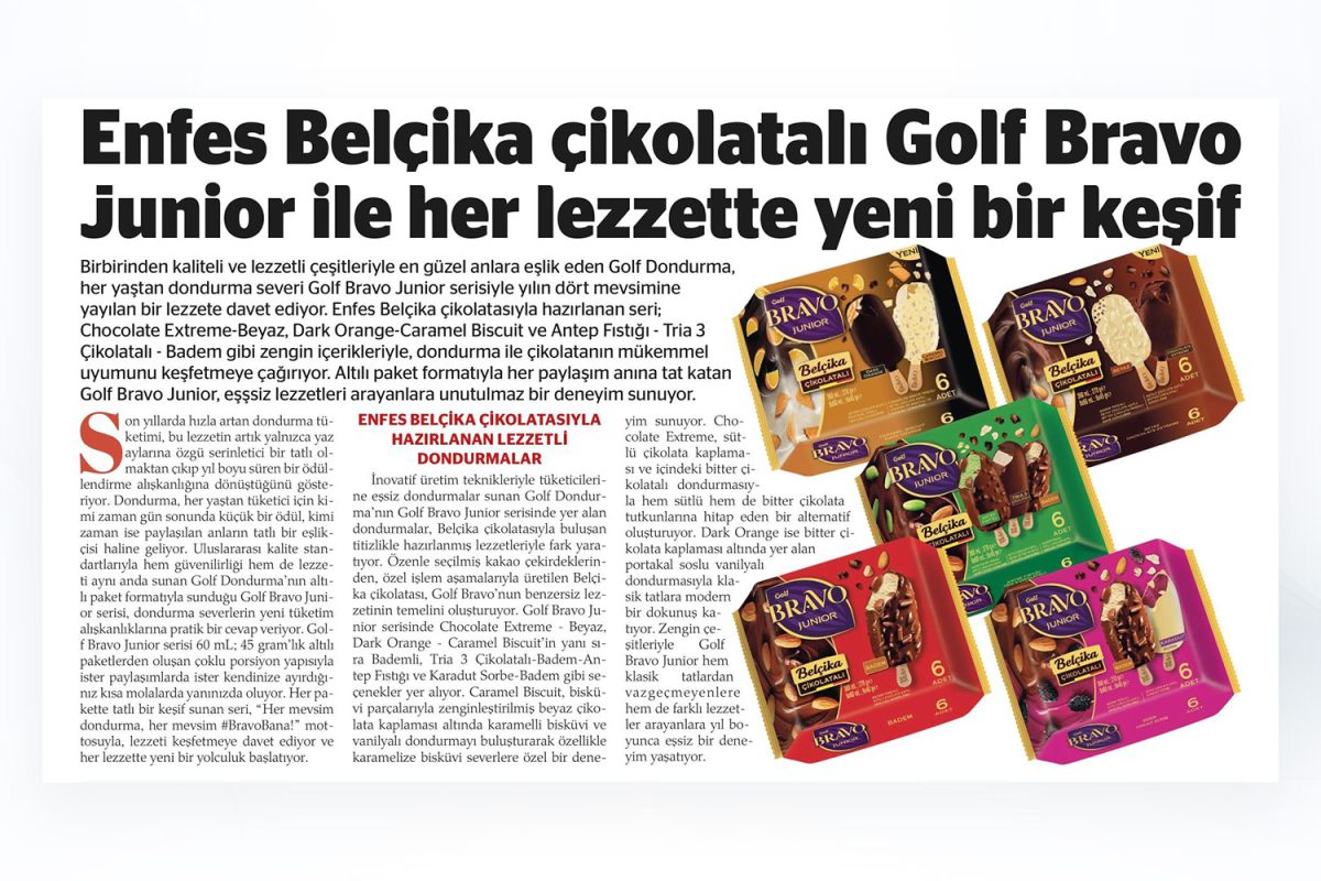Birbirinden kaliteli ve lezzetli çeşitleriyle en güzel anlara eşlik eden Golf Dondurma, her yaştan dondurma severi Golf Bravo Junior se...