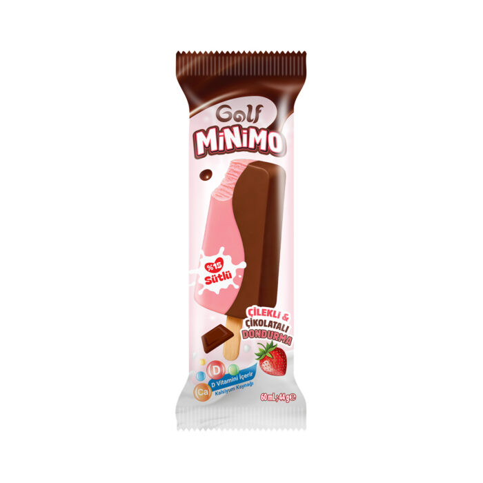 Golf Minimo, %15 sütlü içeriğiyle çilekli ve çikolatalı dondurmasını tek çubukta buluşturarak çocuklara eğlenceli bir deneyim sunar. İçeriğindeki D vitamini ve kalsiyum ile ebeveynlere güven verirken, lezzetiyle de çocukların favorisi olmaya aday.