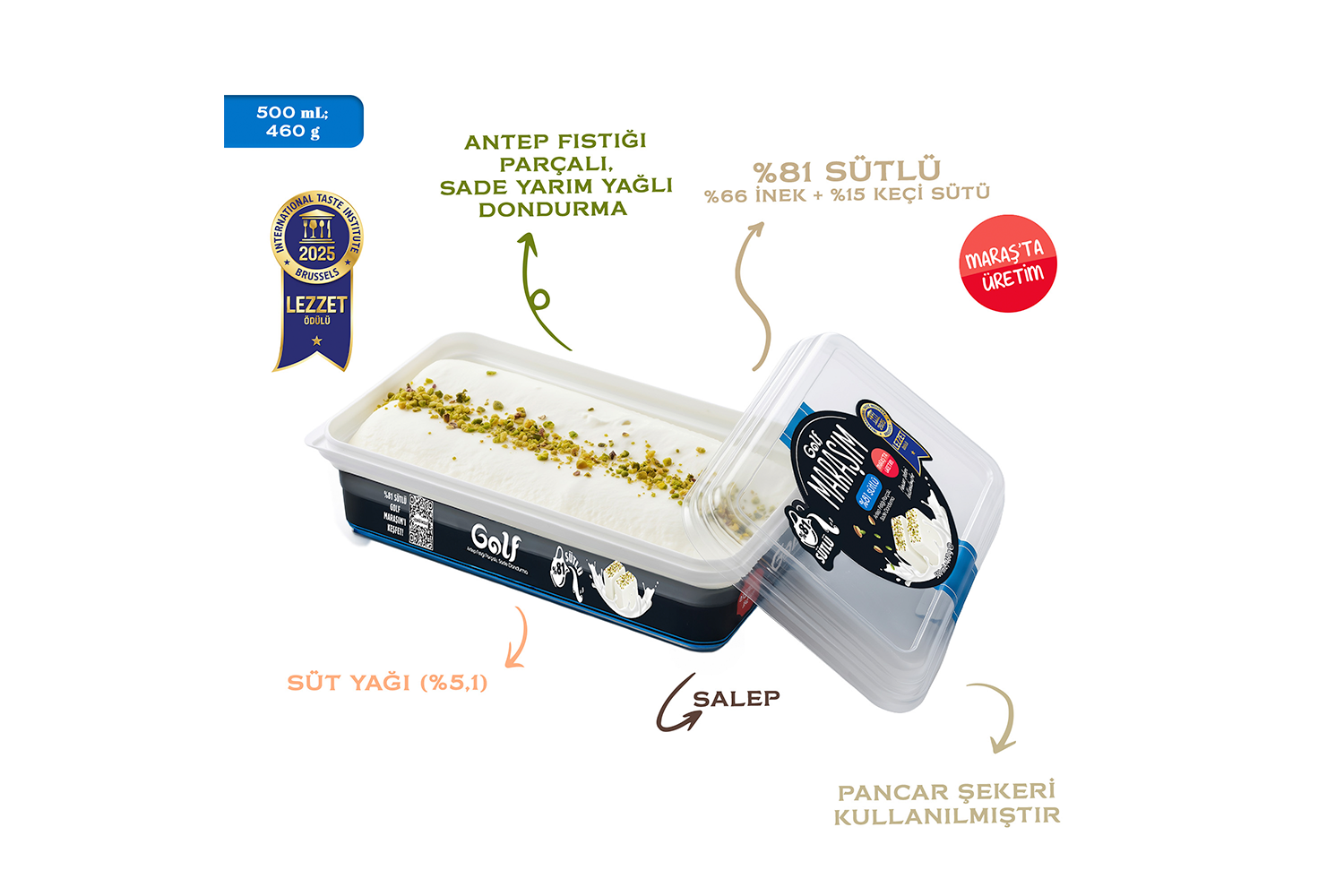 Dondurma keyfini kaşıklamayı sevenlere özel, Üstün Lezzet Ödüllü Golf Maraşım’ın enfes lezzeti kapta! Kaşıkla, %81 sütlü Golf Maraşım’ın lezzetini doyasıya yaşa.