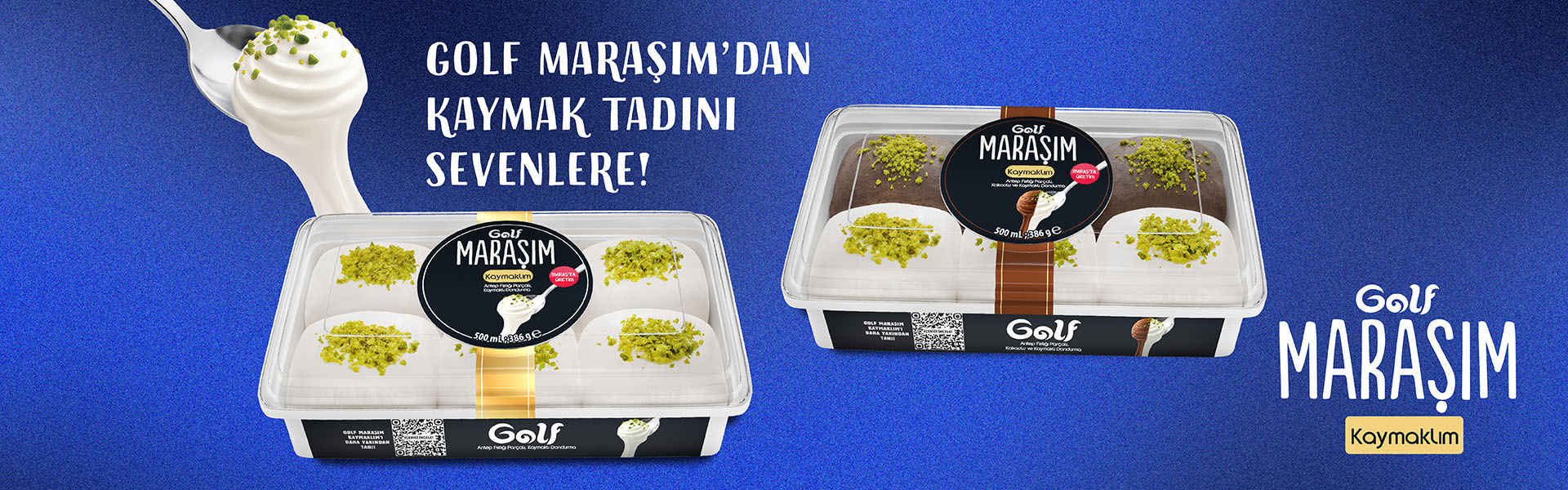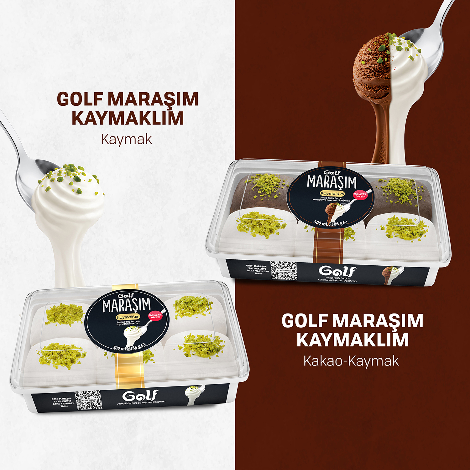Kahramanmaraş’taki fabrikamızda üretilen Golf Maraşım Kaymaklım, pürüzsüz dokusu ve sütle bütünleşen kaymak lezzeti ile her kaşıkta tadı daha belirgin hissettirirken; Maraş dondurmasına özgü uzayan yapısıyla bu keyifli deneyimi tamamlar.