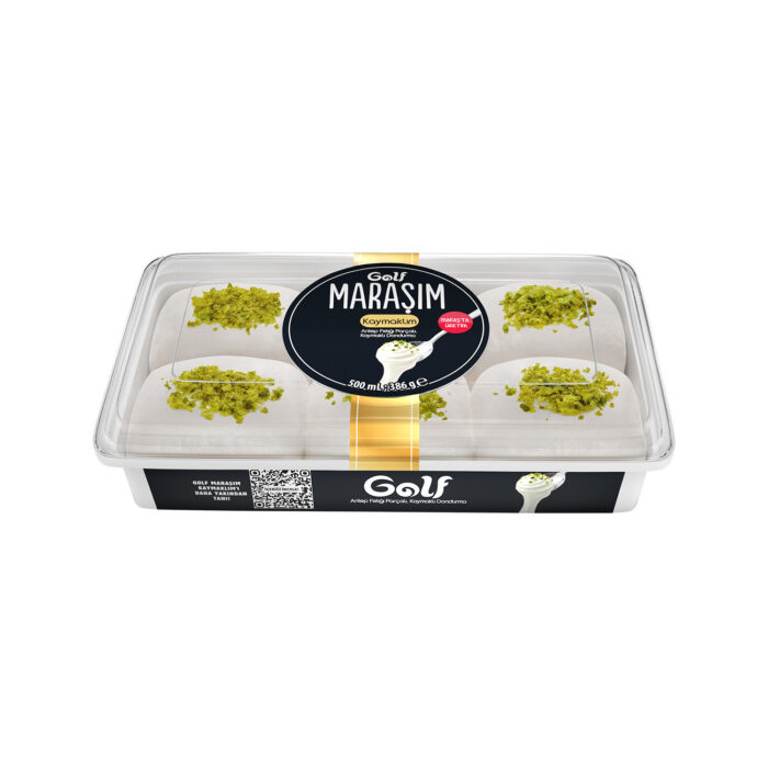 Kaymaklı Yarım Yağlı Dondurma (%99) (Süt Yağı %6,9) [İnek sütü, şeker, su, kaymak (süt ürünü) (%8), yağsız süt tozu, keçi sütü, salep, maltodekstrin, stabilizörler (guar gam, sodyum aljinat, karragenan, keçiboynuzu gamı, sodyum karboksi metil selüloz), emülgatör (yağ asitlerinin mono- ve digliseritleri)], Antep fıstığı parçaları (%1). Eser miktarda yer fıstığı, fındık, ceviz, badem, diğer sert kabuklu meyveler, soya, gluten ve yumurta içerebilir. (-18°C)’de muhafaza edilmelidir. Lütfen çözüldükten sonra tekrar dondurmayınız. Tavsiye Edilen Tüketim Tarihi (TETT) ve Parti Numarası (L) ambalajın üzerindedir. Ürünlerimizde domuz yağı ve domuzdan elde edilen hiçbir katkı maddesi yoktur.